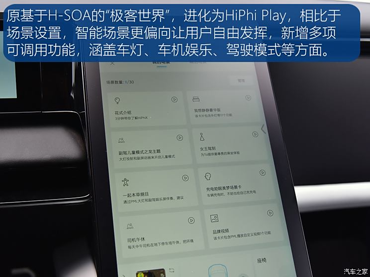 而智能场景则更偏向功能体验,同样,高合这次也让用户深度参与其中,车主可以通过App自己设置一些智能场景使用,同时还支持分享给其他用户,可以说是既做到了实用,也兼顾了一些社交的属性。