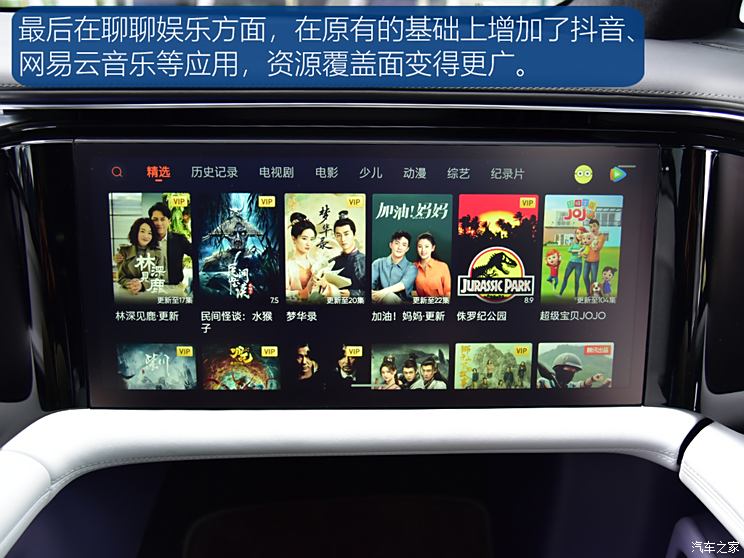 最后再来聊聊娱乐方面,系统再原有资源的基础上增加了抖音、网易云音乐等应用,而操作则支持通过手机进行遥控,这样即使坐在后排也可以轻松控制。