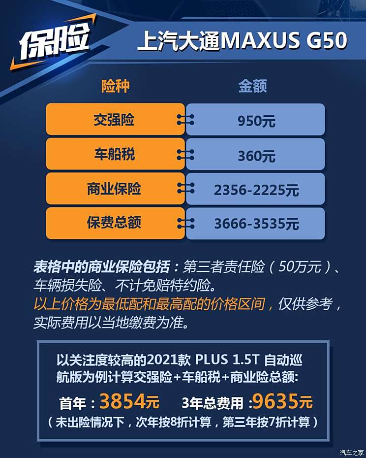 [汽车之家 养车成本] 上汽大通MAXUS G50(参数|询价)定位于一款家用的紧凑型MPV,该车于2019年2月正式上市,并于2021年4月推出了升级版――上汽大通MAXUS G50 PLUS。目前在售车型的指导价格区间为:8.68-16.58万元。动力方面,搭载1.5T+7DCT/6MT的动力组合。这次编辑去了该车的售后车间为大家采集了不同动力组合的保养信息,并结合保险及油耗等数据,来一起了解一下它的用车成本如何吧。(保养资料来自于石家庄,各地区因经济水平不同,工时费或存在差异,价格仅供参考,以下简称上汽大通G50)。