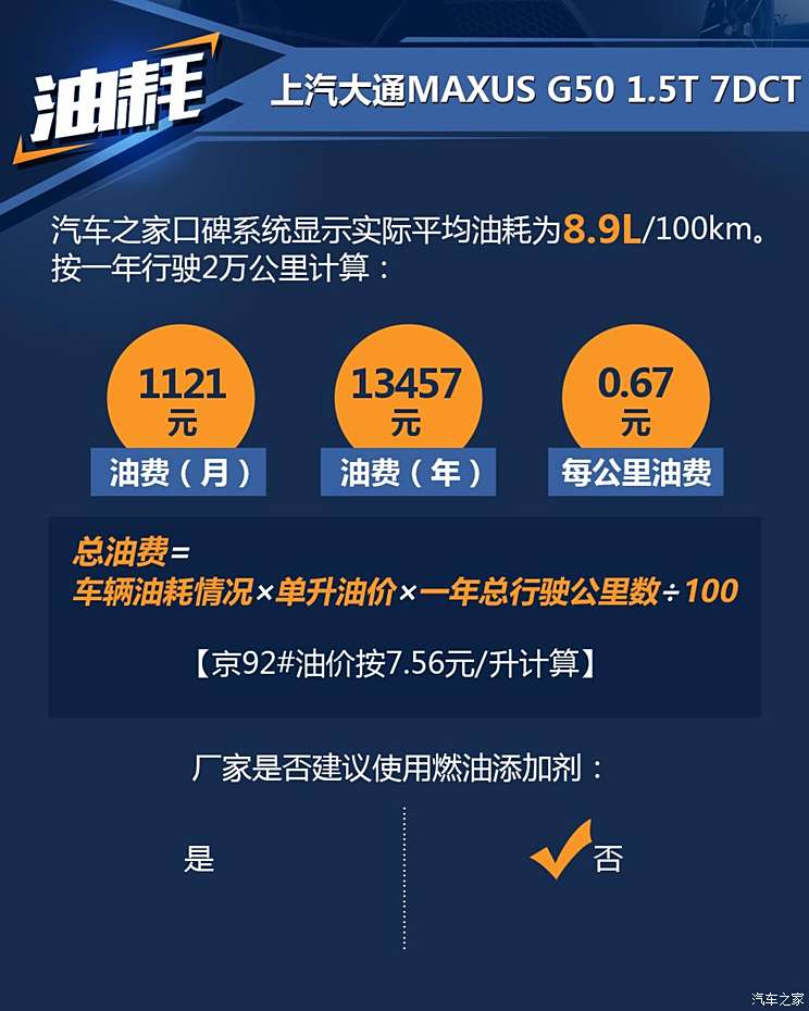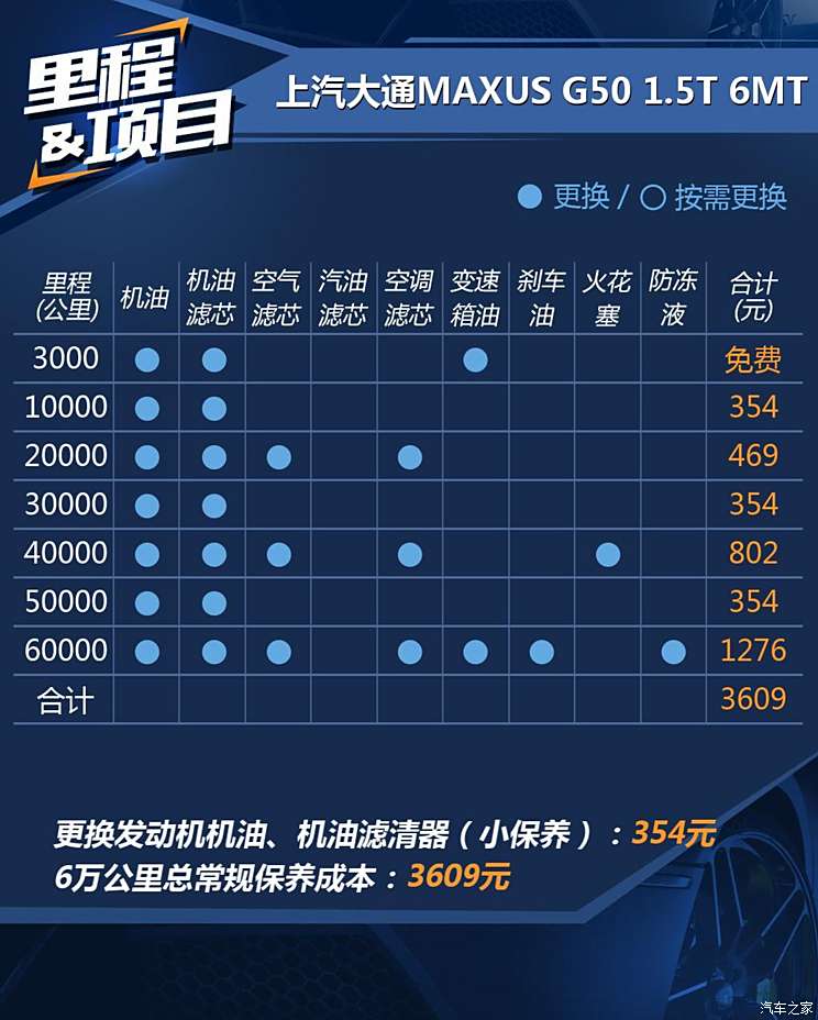小保养成本354元 上汽大通G50用车成本