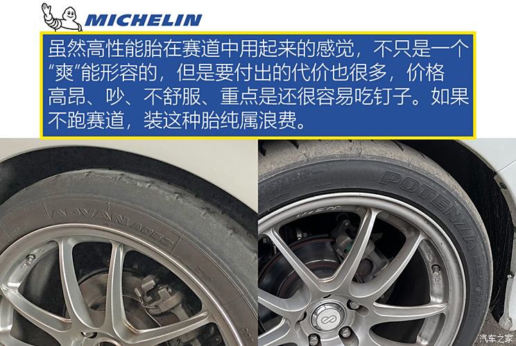虽然在街胎阵营中,米其林的竞驰系列已经是有口皆碑,但是PS并不是一条拿来下赛道的轮胎,所以对于它的干地抓地力表现并没有太多的期待。原本认为它是一款在日常生活中,带来更多操控性、抓地力的产品,但是还是忍不住将他带入赛道中试试。