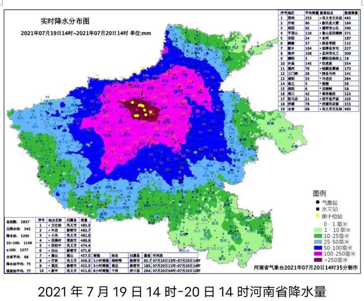 从7月17日(周六)开始,从太行山前到南阳盆地,河南全省出现暴雨大暴雨。强降水主要集中在西部、北部和中部地区,郑州、焦作、新乡、洛阳、南阳、平顶山、济源、安阳、鹤壁、许昌地区出现特大暴雨。嵩山、偃师、新密、伊川、登封等5个国家级气象站突破建站以来日降水量、3日降水量历史极值。