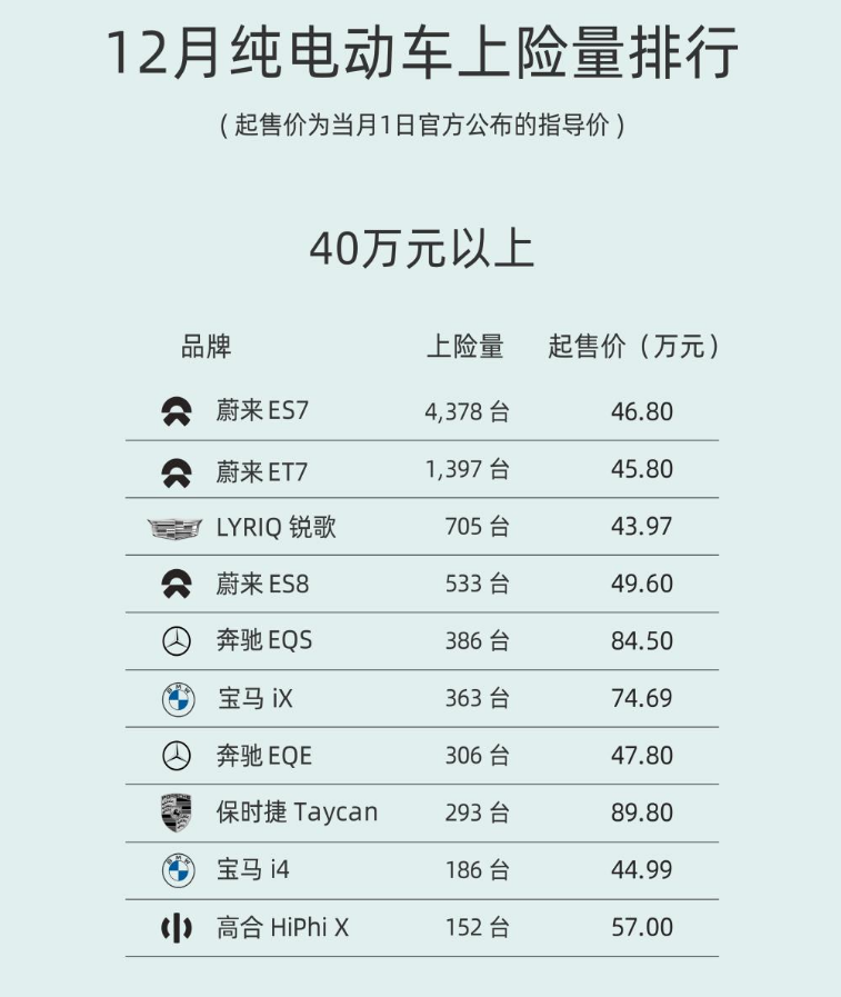 2022年旗下车型均价超40万的蔚来,依靠超过12万辆的年销量,终于圆了中国品牌追求十数年的高端梦。值得一提的是,基于蔚来第二代技术平台打造的ET7成交均价已经接近50万元,2022年的累计销量超2.3万辆,这是中国高端品牌轿车从未达到过的新高度。中国高端轿车市场,也被蔚来激活了。