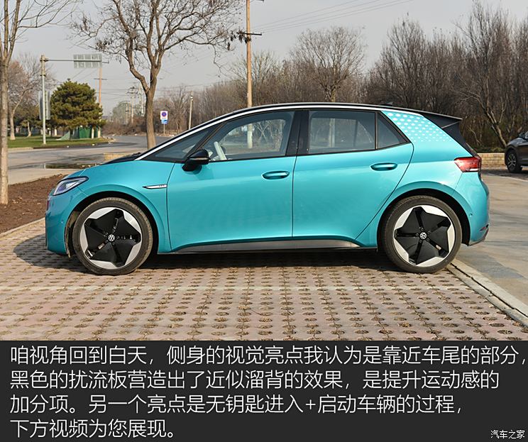 总的来说,大众ID.3外部的造型设计能够抓住喜爱新潮、酷爱运动感的用户喜好,无论是灵动的日行灯、运动化的尾翼还是隐藏式的摄像头,从大局观到细节,都有考量。