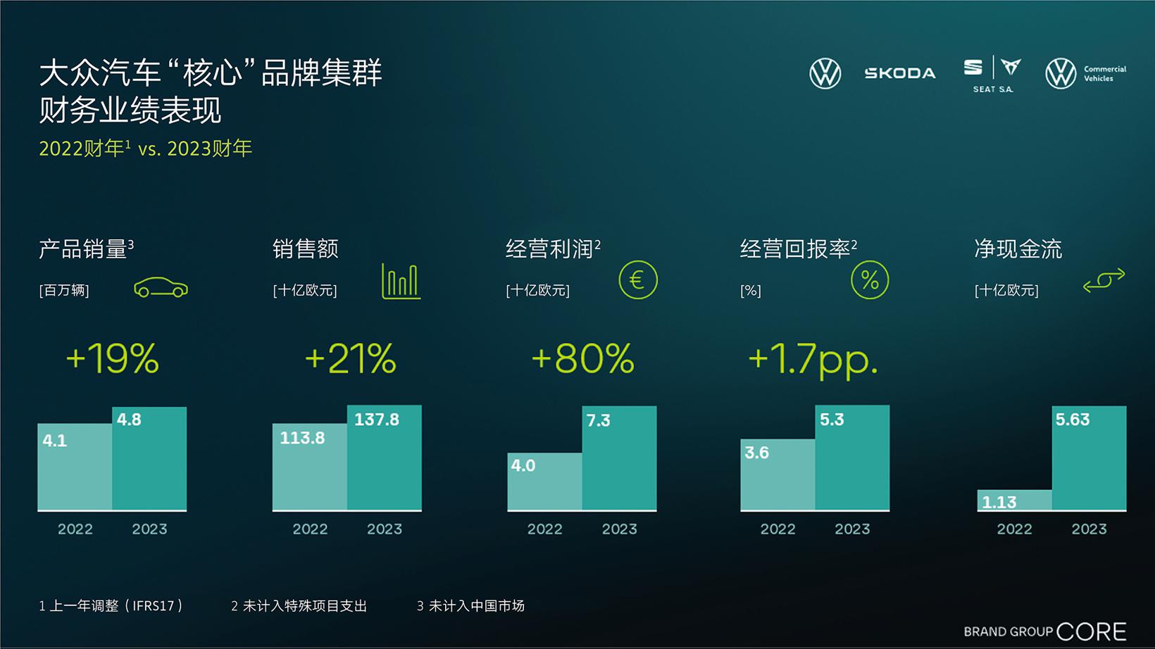 大众集团2023年业绩稳健,核心品牌集群营收1378亿欧元