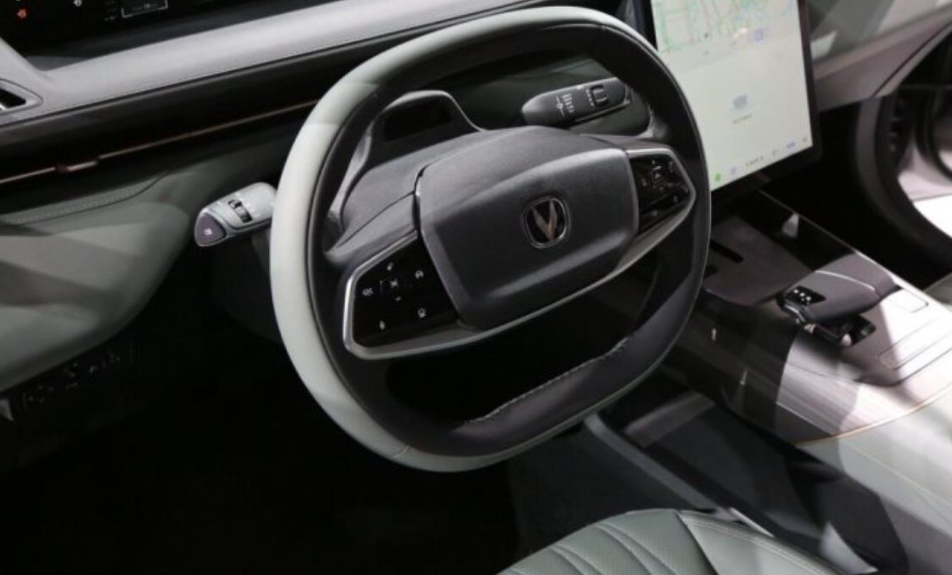 长安逸达的内饰整体采用双层的设计风格,中央10.25英寸的仪表+13.2英寸的中控屏幕组成的“双智能大屏”设计使得整个内饰犹如悬浮在空中一般,颇具科技氛围。此外,车内类似宇宙飞船样式的双辐式多功能方向盘设计非常前卫,其内侧采用了翻毛皮材质填充,整体握感较为舒适。