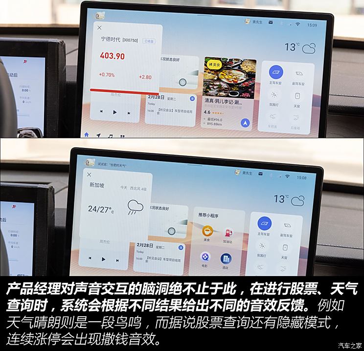 正是基于由硬到软的自主研发能力以及广泛的业务线,使得产品经理能够为座舱带来更多的玩法与预设场景,这恰恰是其他座舱Tier1所不具备的。