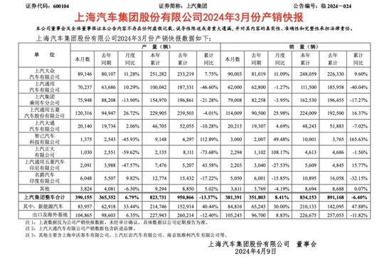 不过,如果将视角放大到一季度,上汽集团累销83.4万辆,相比去年同期依然下滑了6.4%。