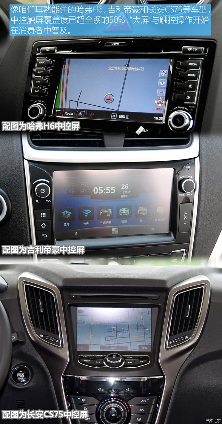 2012年之前,虽然有部分联网车机已经登陆市场,但提供这项配置的仍以顶配车型为主,主打性价比的版本甚至鲜有触屏上身。不过将时间轴移至“十二五”规划的末期,也就是2013至2015年间,中国品牌热销车型中,触控屏不再是稀罕物。