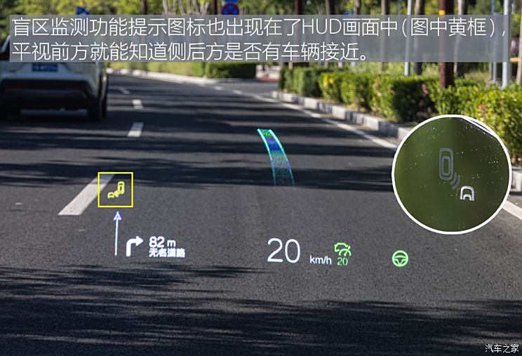我拍摄了魔方AR-HUD在不同场景下的画面,大家可以点击下方视频了解一下。需要说明的是,外界光照较强时拍摄的画面会有频闪,不过肉眼是看不出频闪的。