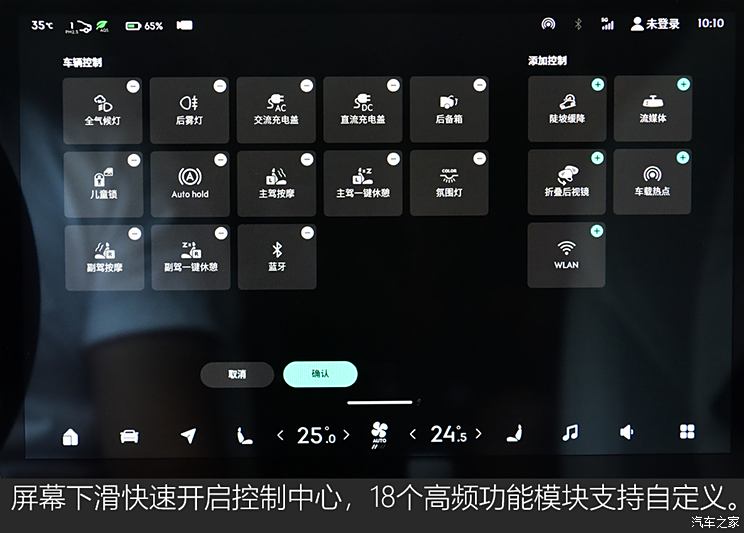 下滑开启控制中心借鉴了手机的操作场景,也是功能菜单扁平化的一部分,目的都是为了用户在操作车机时节省精力成本,控制中心的自定义能够更好地照顾到具体的用户。
