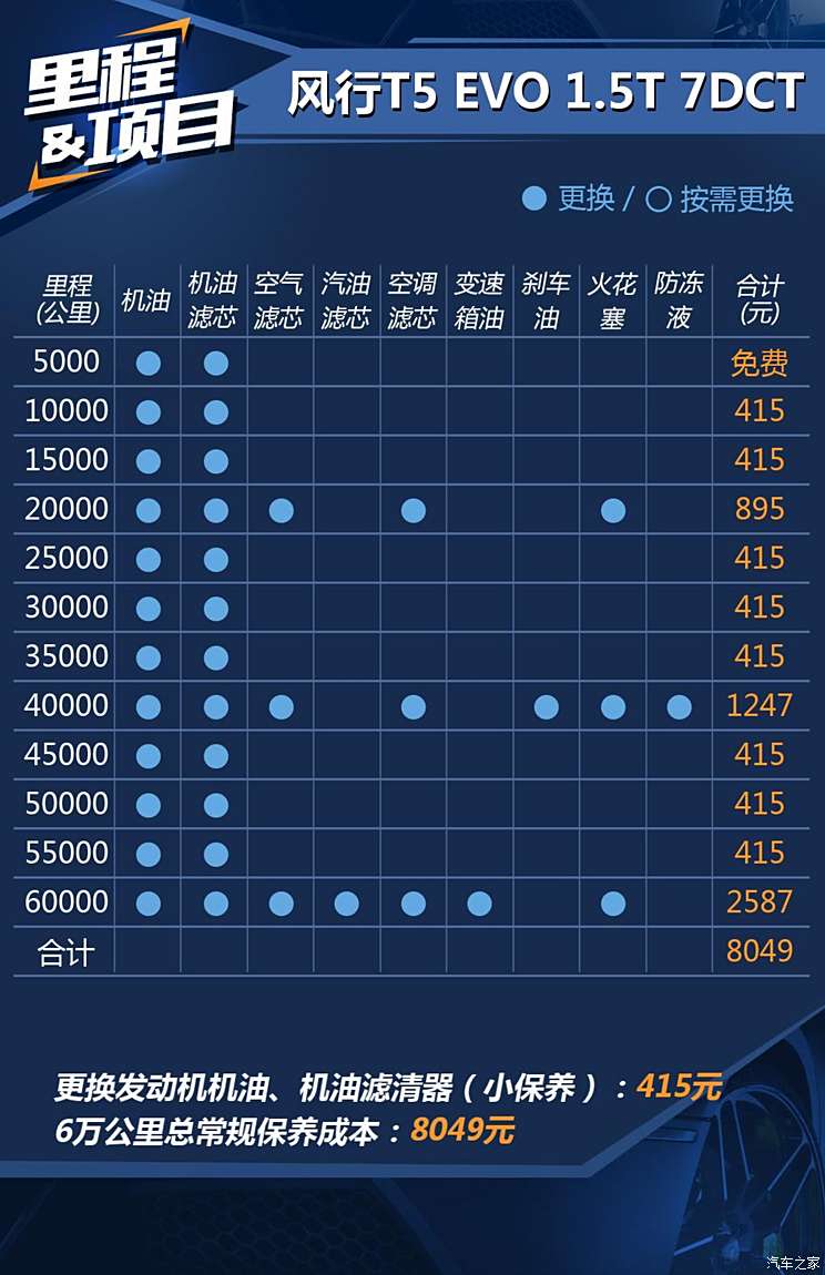 小保养415元 东风风行T5 EVO保养信息