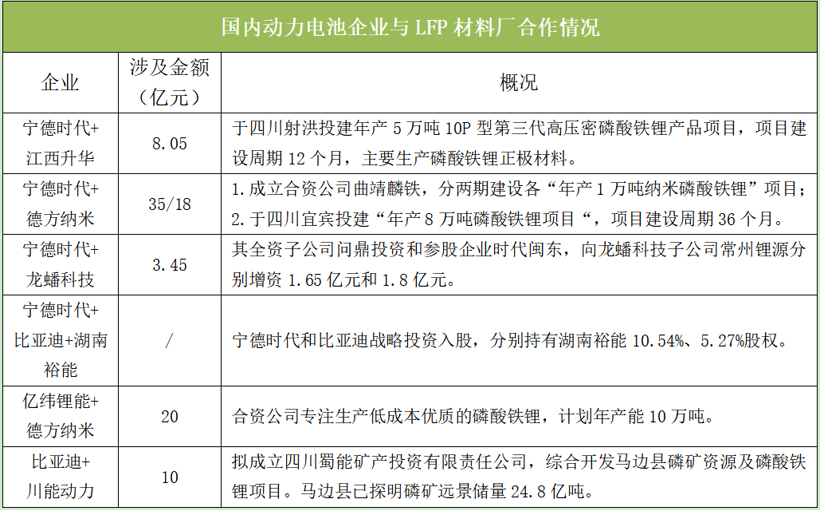动力电池企业“深绑”LFP材料企业