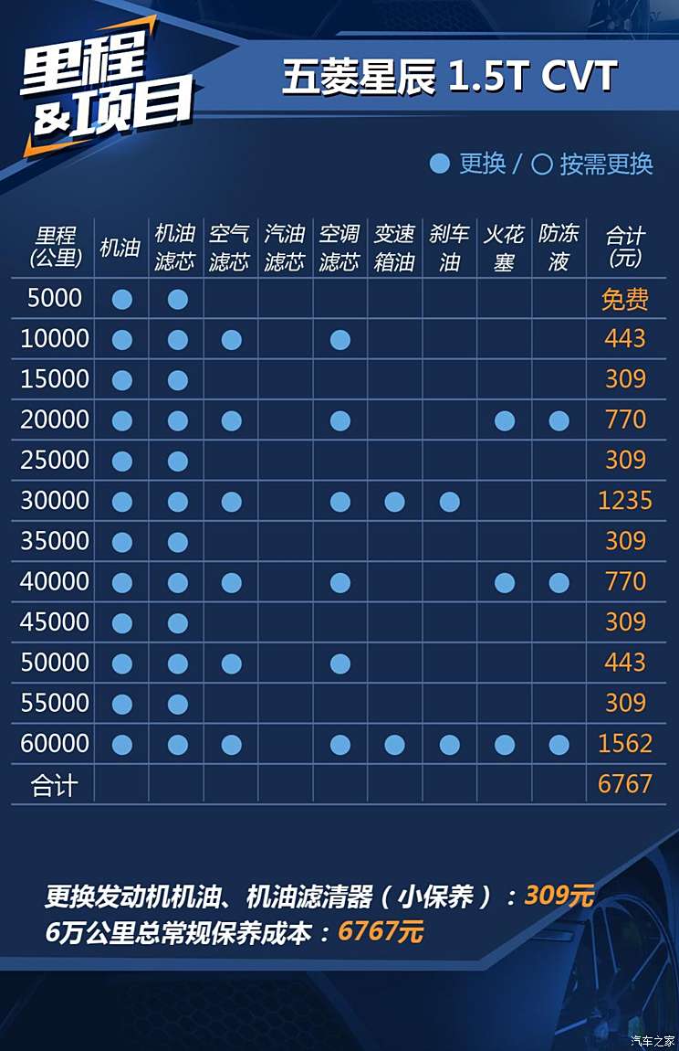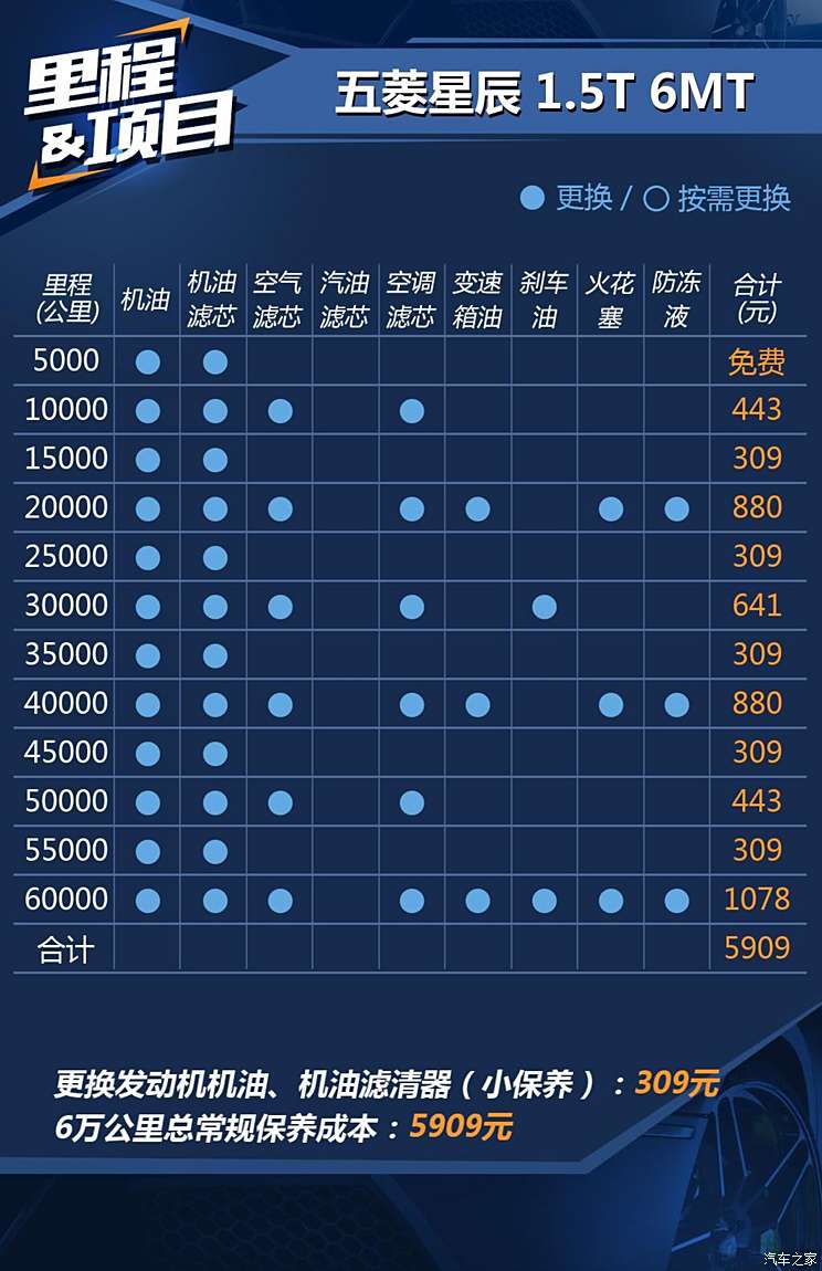 小保养成本309元 五菱星辰用车成本解析