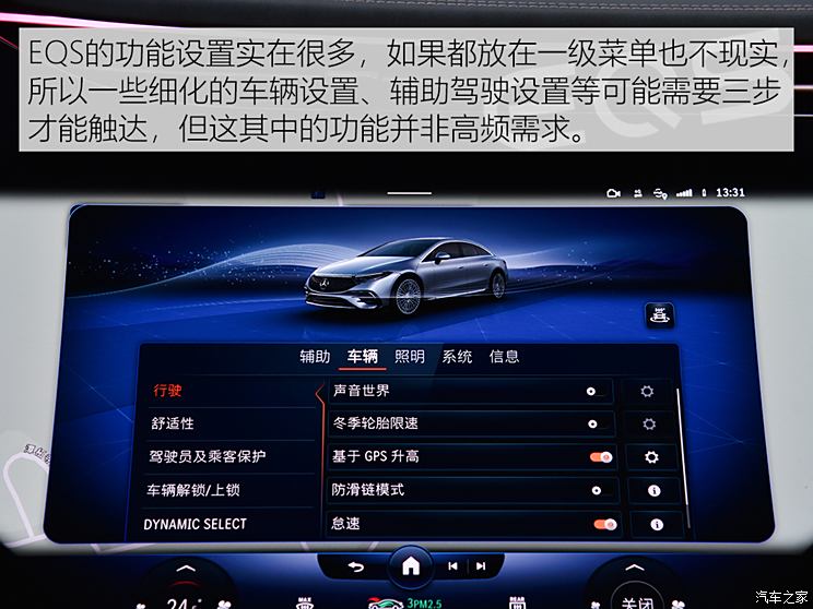 [汽车之家 互联出行] 我们试驾了奔驰EQS(参数|询价),一辆定位清晰、与S级差异化的高端大型纯电动车,感兴趣的朋友可以移步阅读:《一辆全新的“S级” 试驾奔驰EQS 580》。关于这辆车的车机部分,我们今天单独体验一下,虽然该车采用的也是奔驰MBUX系统,但这块宽度1.41米的“大屏”视觉体验超越S级,看看能否让你觉得惊艳?