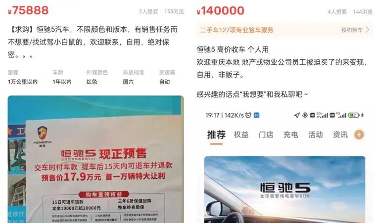 8月2日,有网友在二手平台上发现,不少车主在兜售恒驰5的订单,价格最高的要加价10000元。值得一提的是,在二手车平台上还有不少高价收购恒驰5订单的用户。在缸哥的印象中,上一次在二手平台出现大量预定单转让的车型还是坦克300。
