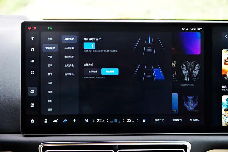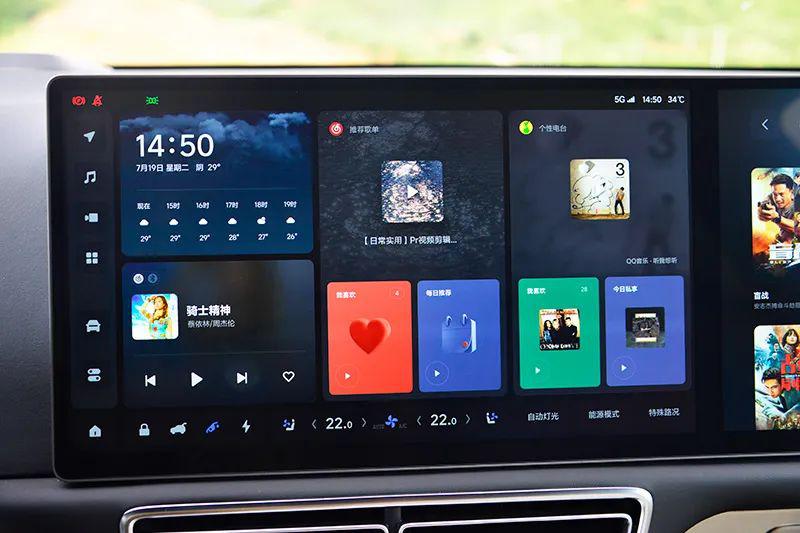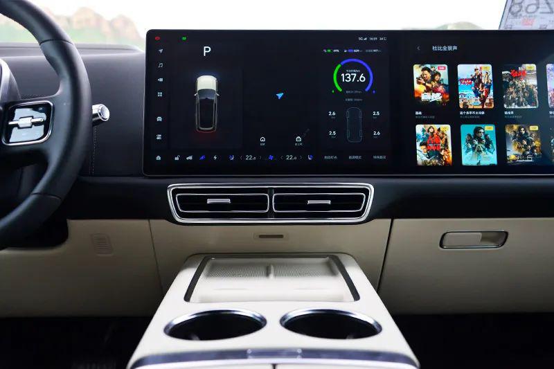 主界面采用大面积的卡片式功能入口,并在左侧和下方都留有常用功能的快捷图标,文字和按钮一目了然、清晰易懂,同时没有太多花里胡哨的色彩,上手非常容易。右侧副驾屏和后排娱乐屏都是以影音娱乐为主,映入眼帘的全都是海量的影音资源。车机UI风格和菜单设置与最早的理想ONE基本保持一致,在使用习惯上不会让用户有任何额外的学习成本,所以及时刚换车也不必担心初上手会有任何不便。