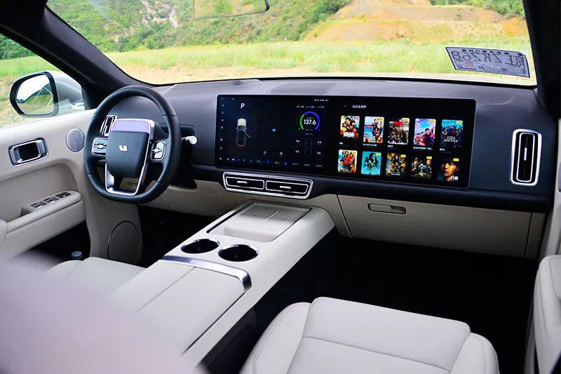 应该没有人会反对理想L9是目前车内科技感最强的车型之一,双15.7英寸的悬浮式屏幕横跨中控和副驾驶前方,同时主驾一侧取消了传统的仪表盘,取而代之的集成在方向盘中央的安全驾驶交互屏和大面积HUD,几乎没有实体按键的设置营造出了极简的风格。不仅如此,第二排车顶还拥有一块15.7英寸的可折叠娱乐屏,使得后排乘客也可以享受大屏娱乐影音体验。