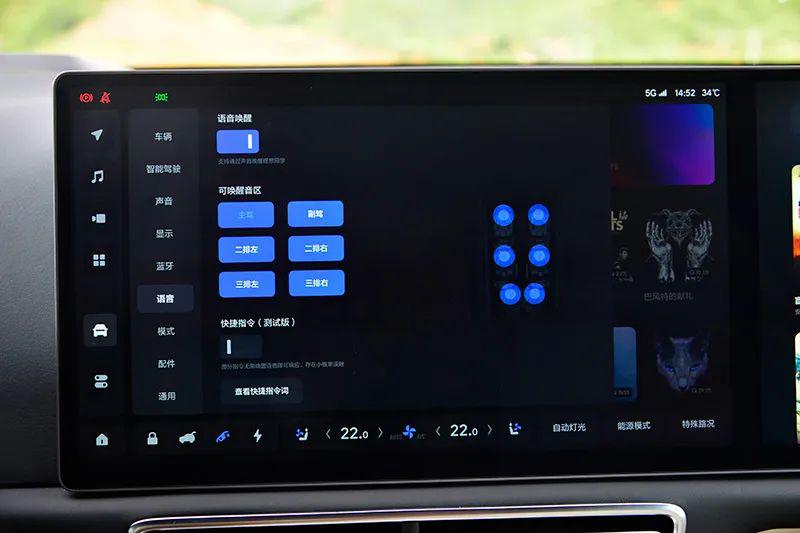 车机支持OTA、自研算法的空间影音效果、深浅色模式的自定义显示主题、多屏互动,并提供了较为丰富的场景化应用,比如小憩、勿扰、擦车、露营、按时出发(出发前15分钟根据预设调节车内环境)等。同时,方向盘自定义按键可以在电子后视镜、全景影像、副驾娱乐屏、低速警示音、轮毂视角、自动泊车等功能中进行选择。另外,车机本地还有电话、电子后视镜、行车记录仪、充电管理等常用功能,整体还是比较丰富的。