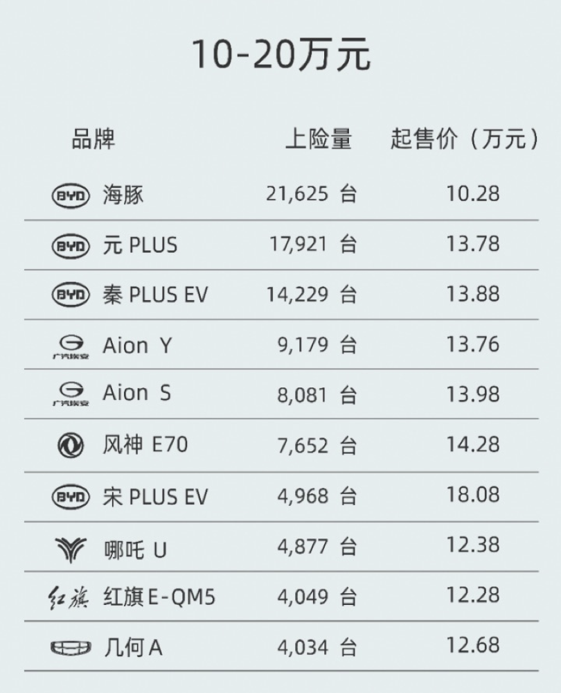 20万以内的新能源汽车市场,玩家众多且战况激烈。尤其在纯电动汽车市场,不仅有海豚、元PLUS等为代表的比亚迪家族系列,还有埃安、哪吒、零跑等一众品牌坐镇。