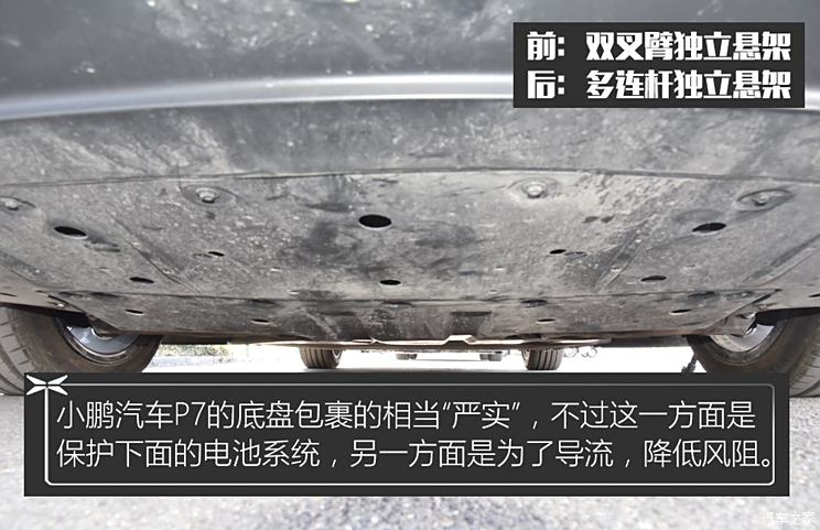该车采用了前双叉臂+后多连杆的悬架组合,并搭载了主动连续减振控制系统(CDC),提升车辆的稳定性和操控感,为了车身轻量化和增加悬架的韧性,小鹏P7在悬架的部分也使用了一些铝合金材质。
